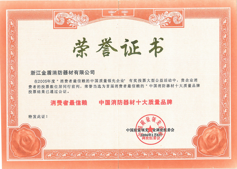 | Top 10 National Enterprise of Fire Fighting Industry |