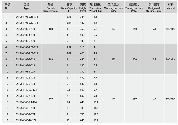 EN1964-1标准钢瓶(PED)