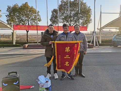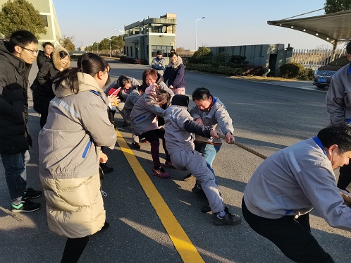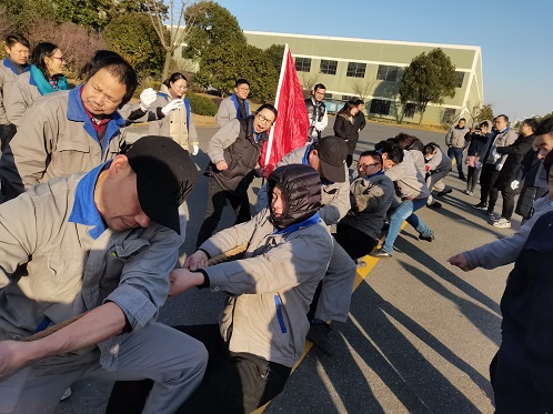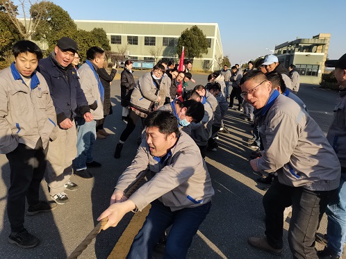 为丰富全体员工的精神文化生活,促进在职员工之间的交流,发扬团队精神,提高团队凝聚力,金盾消防在2020年的最后一天举办了首届“金盾”杯拔河比赛。参赛的队伍分别为钢瓶车间队、灭火器车间队、阀门仓库联队、质保工艺工程联队、行政设备联队。零下五度的酷寒挡不住金盾人的热情。随着比赛的进行,现场的气氛一浪高过一浪。参赛的队员更是卯足了劲,使出全身的力量向后拉。啦啦队员也是不遗余力的为队员加油,现场的加油声和呐喊声更是持续高涨。随着阀门仓库联队和质保联队进去决赛,比赛进去了前所未有的高潮。经过三局两胜的艰苦抉择,阀门仓库联队拔得头筹,取得冠军,质保联队和行政联队分获二三名。最后公司总经理陈柯和常务副总蒋德勇为获奖的队伍颁奖。拔河比赛拼的是绝不放弃的意志,拼的是毫不气馁的精神。通过此次拔河比赛,提高了公司的团队凝聚力和战斗力,同样也提升了金盾消防坚韧不拔的意志力,为2020年画上一个圆满的句号!