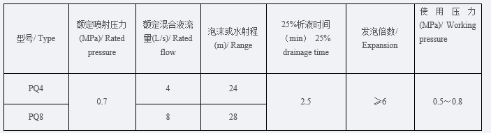 1.2.6 PQ4 、PQ8 在消防系统供给压力水的情况下自吸泡沫液使用,发泡倍数大于等于6倍;